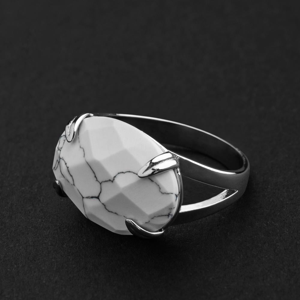 خاتم ملكي مخالب فضه عيار 925 - كت دايموند ابيض معرق