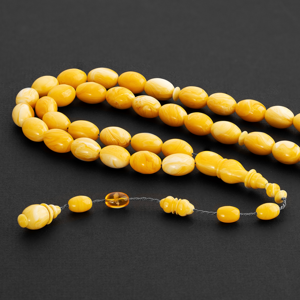 سبحة مستكا بيضاوي تمليكة - اصفر كهرماني